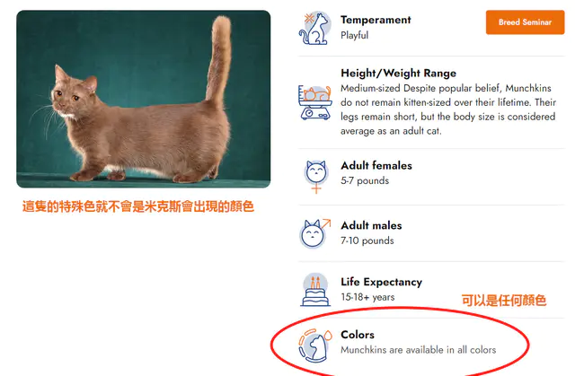 首先,先看一下tica網站曼赤肯的頁面,這個特殊色是隱性基因,本身就不會出自於米克斯。而且,顏色寫明可以是任何顏色。隱性基因需要父母雙方都擁有的基因,小孩才會出現的叫做隱性基因,這隻的臉不是特別尖。(於發文的同時,還有人在說不要特殊色的曼赤肯,要尖臉家貓色的才符合規範。很多人都懂特殊色一定來自品種貓,但就是有人假裝看不見。)