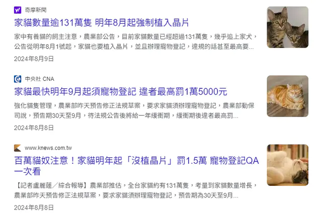 只要是【正式單位】使用的家貓,皆是【所有的貓】,只有私人或個人解讀或認知的差異,才會是米克斯,難到下面的新聞意思是只有米克斯要植晶片?