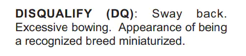 DISQUALIFICATION (DQ): Any sign of the "Dominant Blue Eye" mutation (e.g. Ojos Azules, Russian Altai/Topaz). Short Munchkin-like legs. Docked tail. No tail. Undernourished or frail.