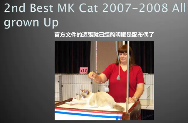 被你們認為有問題的暹羅布偶色竟然在展會上面?不要跟我說這不是短腿……..十幾年前人家就用暹羅布偶色在拿名次你還在尖臉家貓色......全世界的曼赤肯都不符規範……..全世界只有台灣一家符合規範………..
