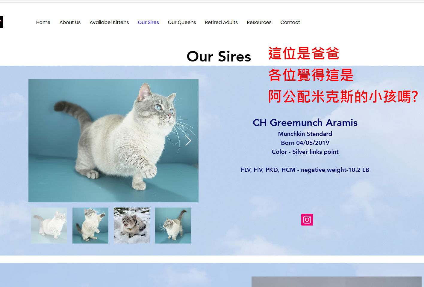 補充:小步舞曲與曼赤肯的區分:配波斯系的是小步舞曲;配其它品種的是曼赤肯。而波斯系有波斯、加菲以及最新的波斯系布偶。依照規範曼赤肯不能配無毛貓種、迷你小型貓種、身體細長的貓種也會造成搖擺背,其他品種皆可。我們沒有要開發新品種,加上嚴格遵守動保法令,不管網路謠言怎麼傳,我們絕對不使用沒有來源(未知基因)的米克斯做為我們的種公母。以下是查證後找到的資料: