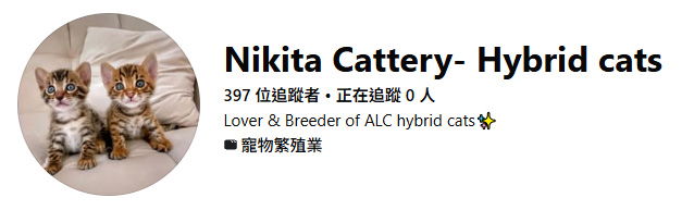 貓舍FB:https://www.facebook.com/NIKITACATTERYHYBRIDS/